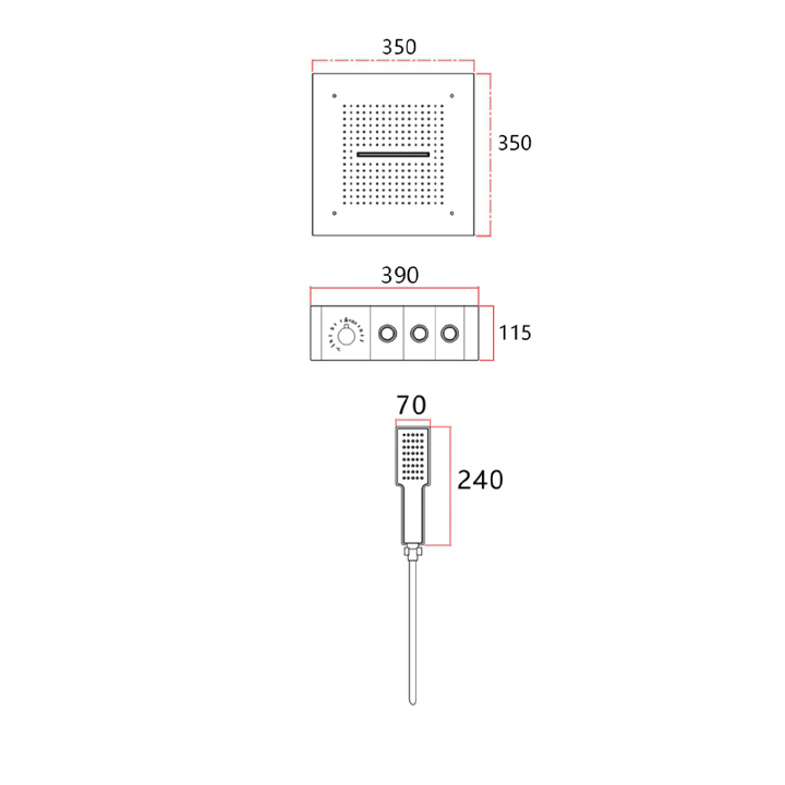 | SHOWER SIZE L X W X H | 350 350mm |