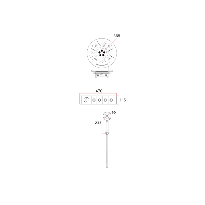 | SHOWER SIZE L X W X H | 368 368mm |